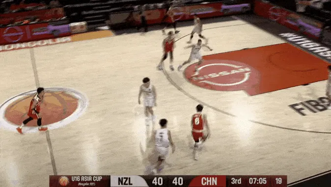 第三节比赛,赵博新空切接球强起上篮打进,中国U16反超2分打停新西兰。